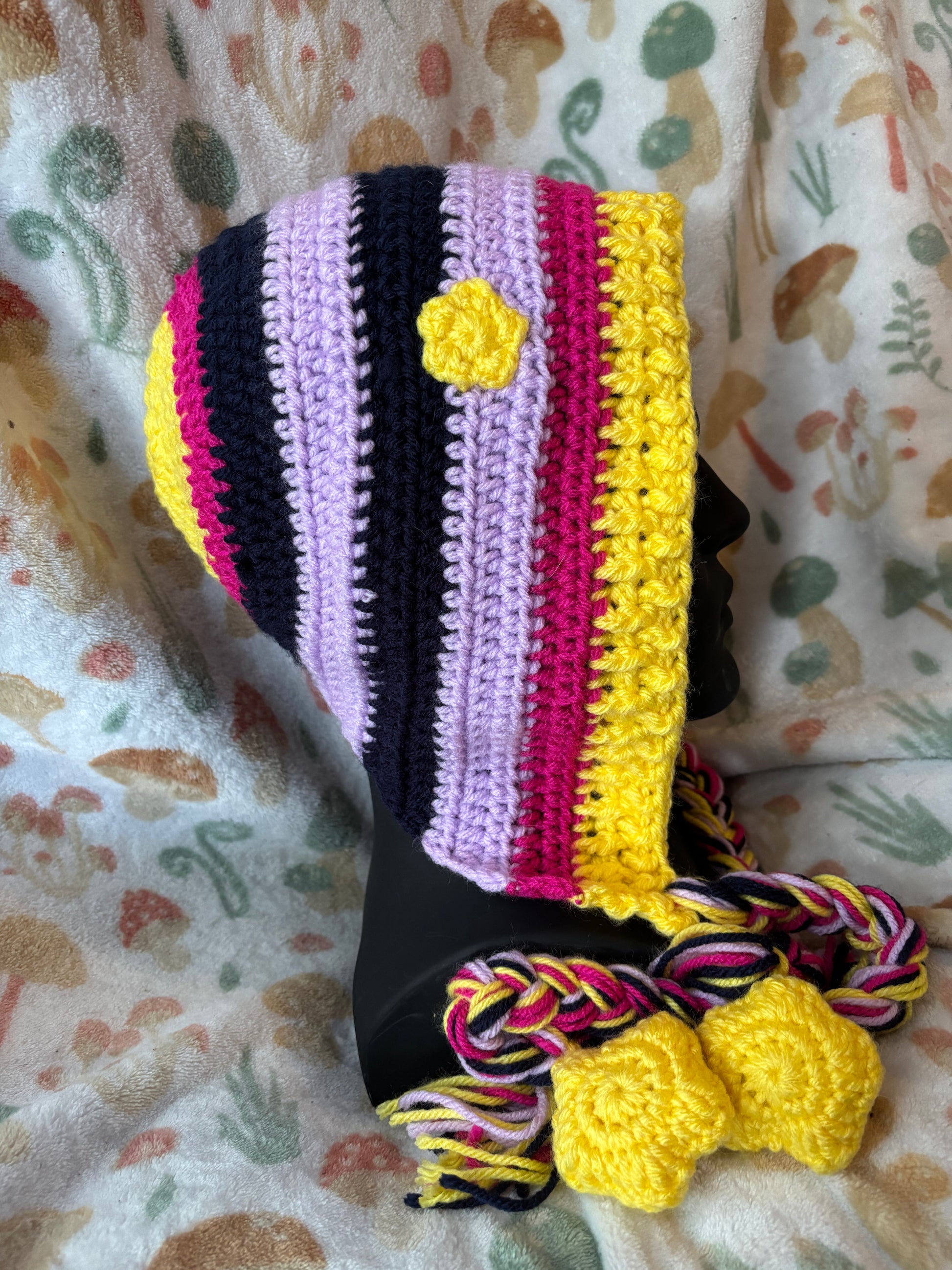 Add some fun style to your wardrobe with these hooded hats. Custom options are available just contact us!